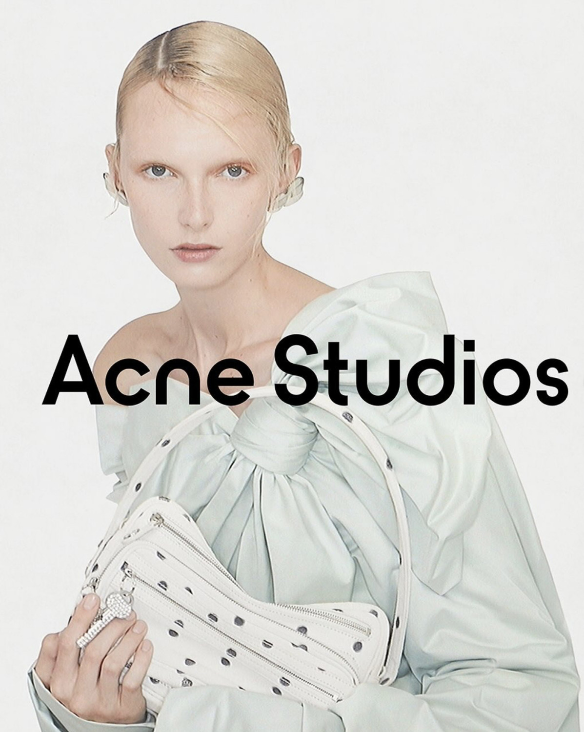 Acne Studios никогда не следовал канонам, и его новая кампания SS ‘25, снятая Шоной Осборн, в очередной раз доказывает это. Коллекция балансирует на грани фантазии и повседневности, сочетая в себе напряжение противоположностей: нежные пастельные оттенки пересекаются с четкими линиями кроя, а нарочито объемные банты и скульптурные драпировки переосмысляют классические силуэты.