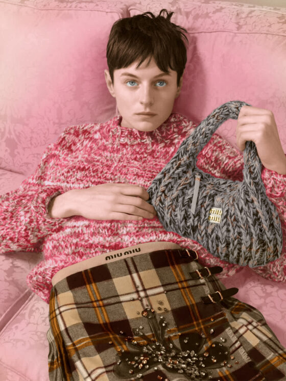 Юбки-килты, байкерские куртки и пряжа: коллекция Miu Miu Upcycled