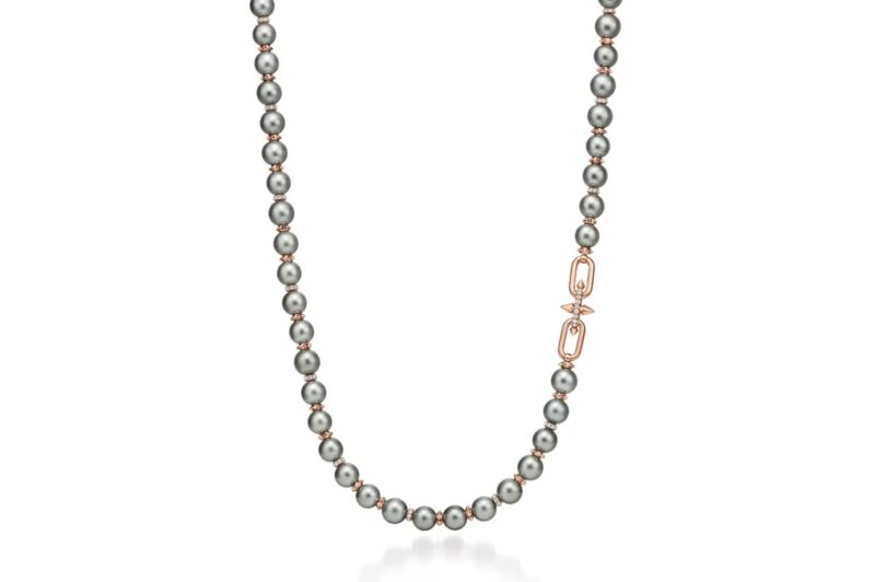 В главу Tahitian Pearl вошли подвеска, серьги, ожерелье, браслет и кольцо из 18-каратного розового золота. Таитянский жемчуг, как правило, имеет разные оттенки от синеватого до серого, и он отлично дополняет острые «копья» драгоценностей. «Парящие» бриллианты получаются такими благодаря тому, что мастера Дома используют платформу Floeting®, а она в свою очередь возвышает камень над оправой без видимой фурнитуры. Поэтому коллекция украшений Tiffany Titan может похвастаться не только эффектными аксессуарами, но и новыми технологиями.