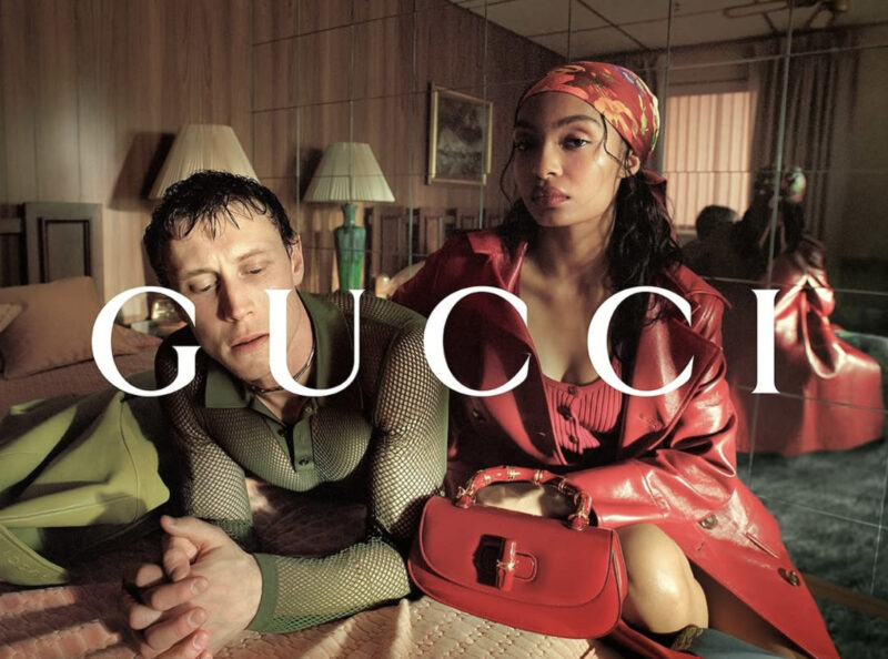 При создании этой коллекции Сабато де Сарно отошел от эпатажности Алессандро Микеле, предлагая более лаконичный взгляд на наследие бренда. Яра Шахиди на одних кадрах позирует в непринужденной белой майке и брюках цвета хаки, дополненных коричневым ремнем с логотипом, а на других демонстрирует оливково-зеленую куртку с бахромой или красное кожаное пальто, которые добавляют линии динамики. Однако центральное место в этом повествовании занимают аксессуары: сумки Gucci Bamboo появляются в новом прочтении — в сиреневом, насыщенно-красном и оливковом оттенках.