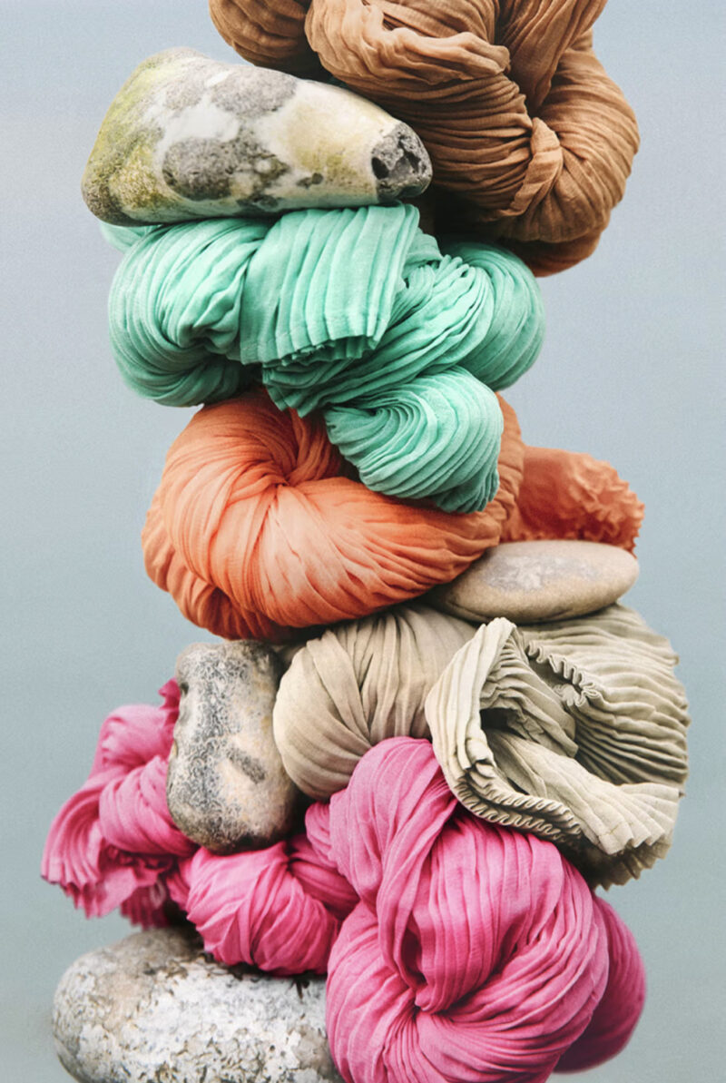 К предстоящему сезону праздников Issey Miyake представил новую коллекцию Chiffon Twist, которая является продолжением линии Pleats Please, сделавшей бренд синонимом инновационного дизайна. Как следует из названия, она вдохновлена нежной текстурой шифона: ткань изящно драпируется и скручивается, обнимая тело с непринужденной грацией.