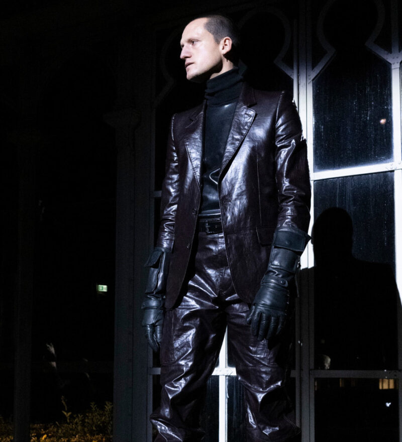 Льняные смокинги были покрыты резиновым слоем, чтобы имитировать черную кожу, а джинсы украшены аэрографической росписи. Эти театральные элементы отсылали к культовому сценическому образу Майлза Дэвиса, чьи искусно подобранные наряды стали источником вдохновения для дизайнеров.