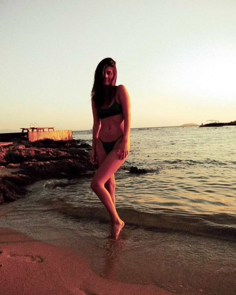 Жена актера опубликовала серию снимков, на которых позирует с ним. На одном из кадров Виктория демонстрирует стройную фигуру в открытом купальнике.