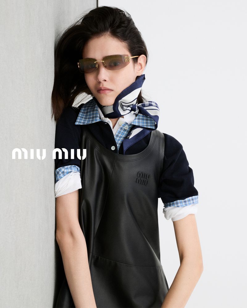 Коллекция, как и сама кампания, — это игра с пропорциями, минимализм с характером и немного безумия. Вдохновленные униформой, но с интересными деталями, модели в Miu Miu напоминают скаутов. Они позируют в многослойных образах, состоящих из куртки с накладными карманами в оттенках хаки, карго-шортах с акцентным ремнем, а также кожаном платье, код которым скрываются две (а то и три) рубашки.