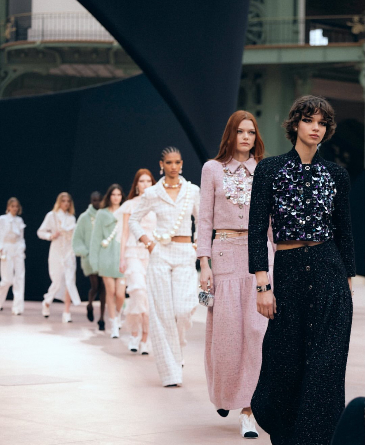Презентация коллекции Chanel FW ‘25 стала воплощением мечты — легкой, туманной, пропитанной тонкими отголосками классики Дома. Пока fashion-индустрия гадала, чем удивит Матье Блази, дизайн-команда разыграла собственную партию, сотканную из шифона, тюля и жемчуга.