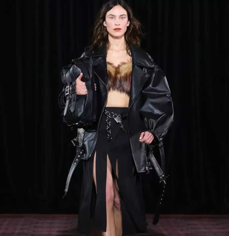 Одной из главных тем коллекции стала школьная эстетика — Роша представила свой взгляд на типажи, знакомые каждому. От строгой директрисы до тех самых мальчишек, что вечно шалят на задних партах, — в этом сезоне ее коллекция балансирует на грани. Мужские образы напоминали классические школьные униформы: бермуды, ботинки, регбийные футболки. А женская линия выглядела дерзко, но все же в духе Роша — кожаные байкерские куртки соседствовали с небрежно разорванным твидом и нежными лентами, которые, казалось, удерживают ткань от «распада».
