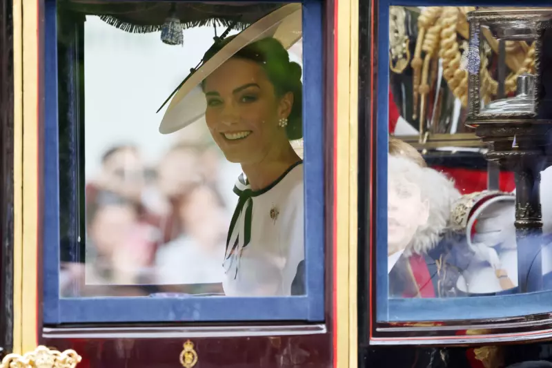 Вместе с другими членами королевской семьи принцесса Кэтрин участвует в церемонии выноса флага в честь официального дня рождения короля Чарльза III. В этот день происходит торжественное разведение караула с выносом знамени гвардейского полка, который несет караульную службу в Букингемском дворце.