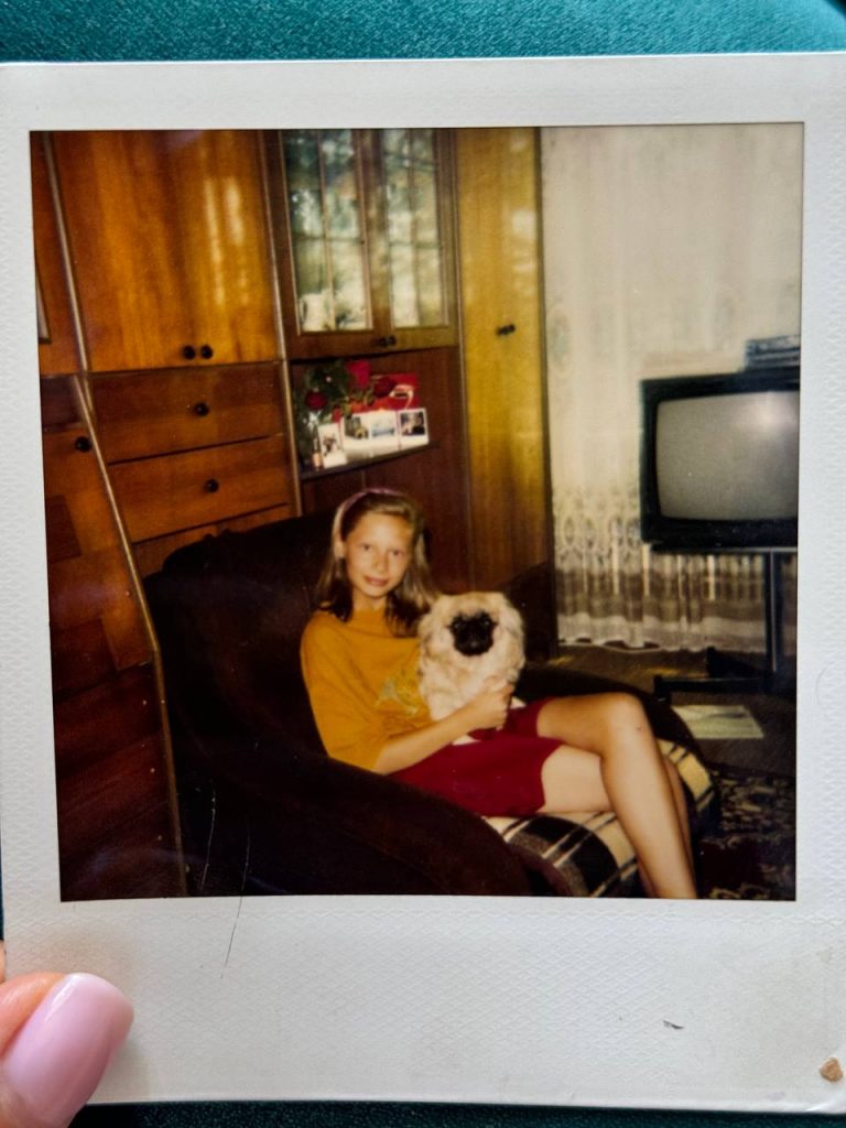 «Наташе 4, 12 ,14, 16 лет», — подписала Рудова публикацию в своем Telegram-канале. На первом кадре девочка катается на деревянной лошадке, на втором — сидит на кресле с собакой на руках, затем повзрослевшая Наталья стоит в розовом купальнике, а далее — позирует посреди комнаты в темных джинсах и укороченном белом топе с длинным рукавом.
