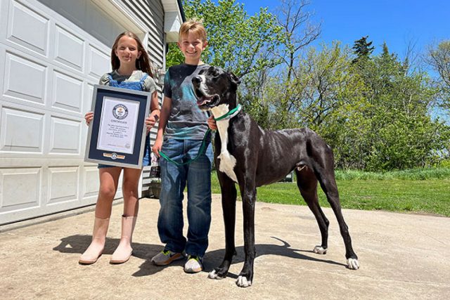 Напомним, Кевину было три года. Рост датского дога из штата Айова от лап до холки — 0,97 метра. При этом средний рост самца этой породы – не более 76 см. О том, как пес попал в Книгу рекордов Гиннеса, писали здесь.