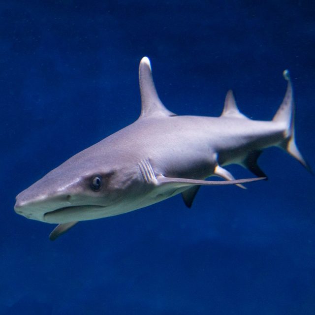 Детеныш редкой белоперой акулы содержится в отдельном аквариуме. Как выяснилось, малыш появился на свет в середине июня. Но директор океанариума Ирина Мейнцер сообщила об этом только сейчас, поскольку все это время специалисты наблюдали за его здоровьем и умением самостоятельно питаться.