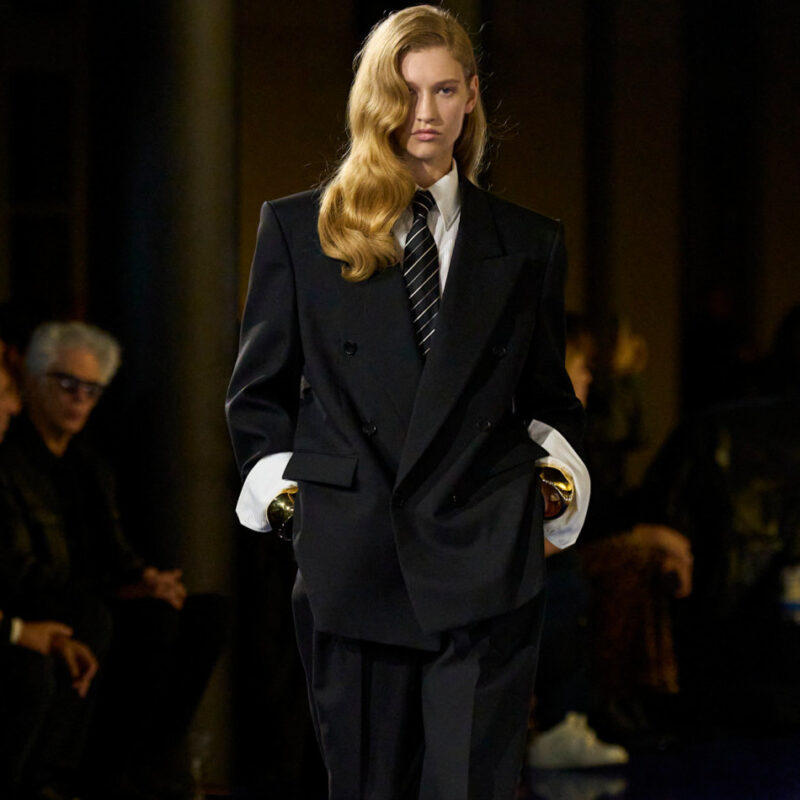 Вдохновение для сезона SS ’25 Энтони Ваккарелло почерпнул непосредственно из образа основателя Дома. После прочтения интервью начала 2000-х, в котором Ив Сен-Лоран утверждал, что «его женщина» — это отражение его лично, дизайнер решил воплотить эту суть в одежде. Одни модели демонстрировали двубортные пиджаки и свободные брюки, а другие —кожаные бомберы и объемные тренчи, туго затянутые на талии.