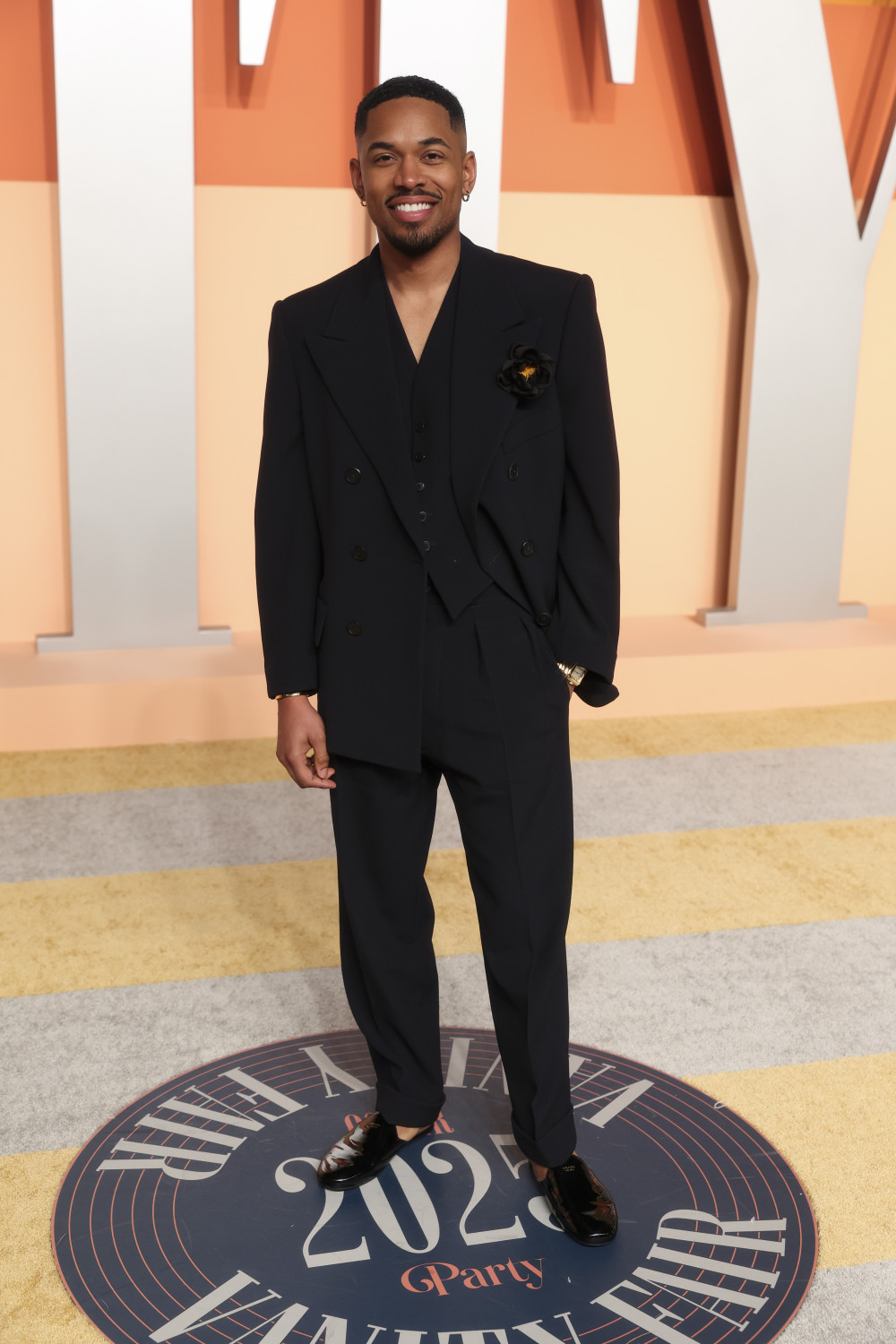 Келвин Харрисон-младший доказал, что сдержанность — новое определение шика. Его двубортный костюм глубокого темно-синего оттенка выглядел безупречно, а лакированные лоферы добавляли нотку расслабленной элегантности.
